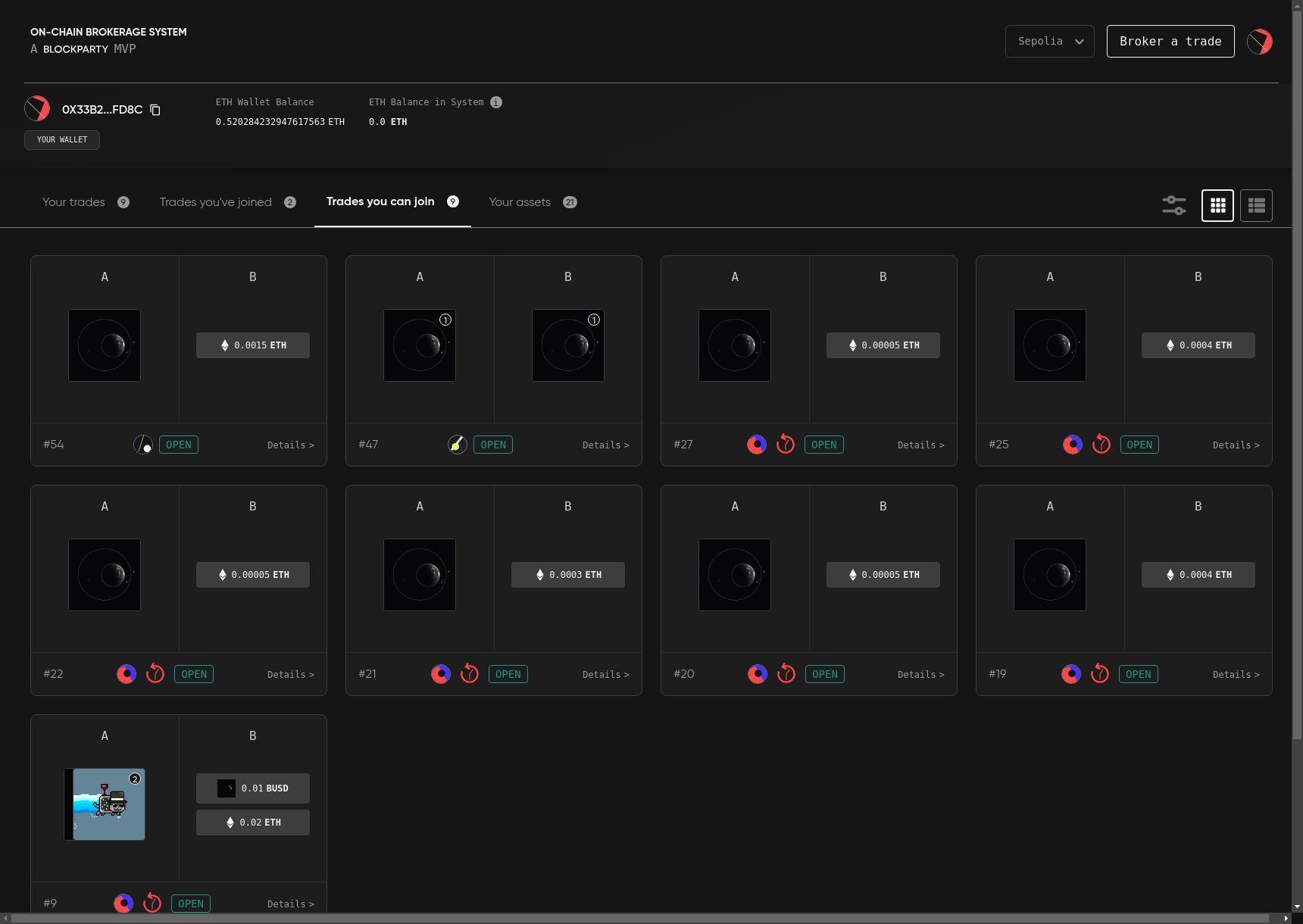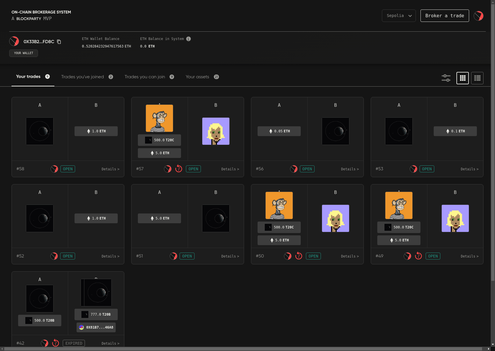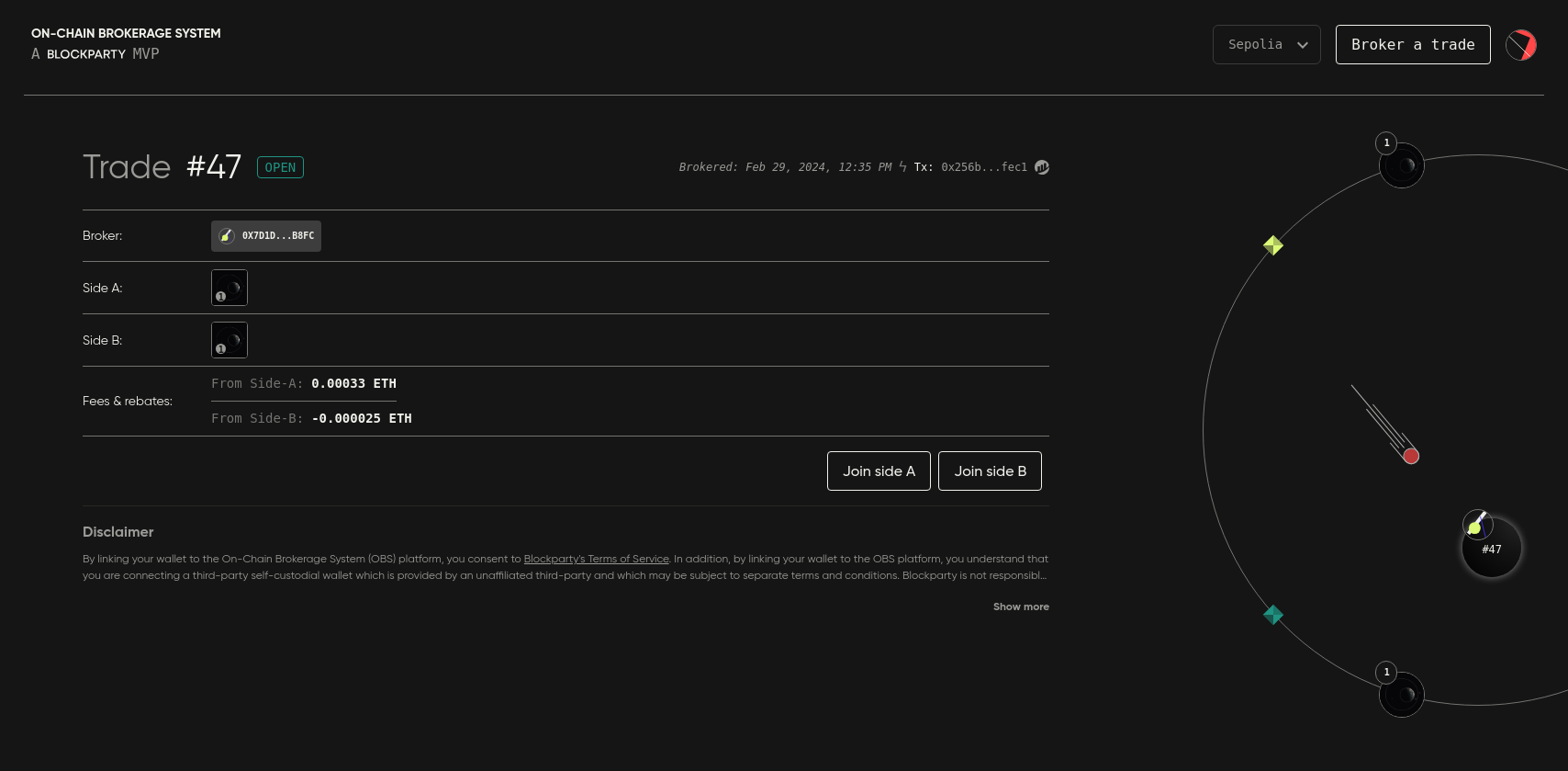 The Trade Details URL is what you, as the broker, will want to share with the owners of the assets on either side of your trade so that they may easily locate and join the trade.